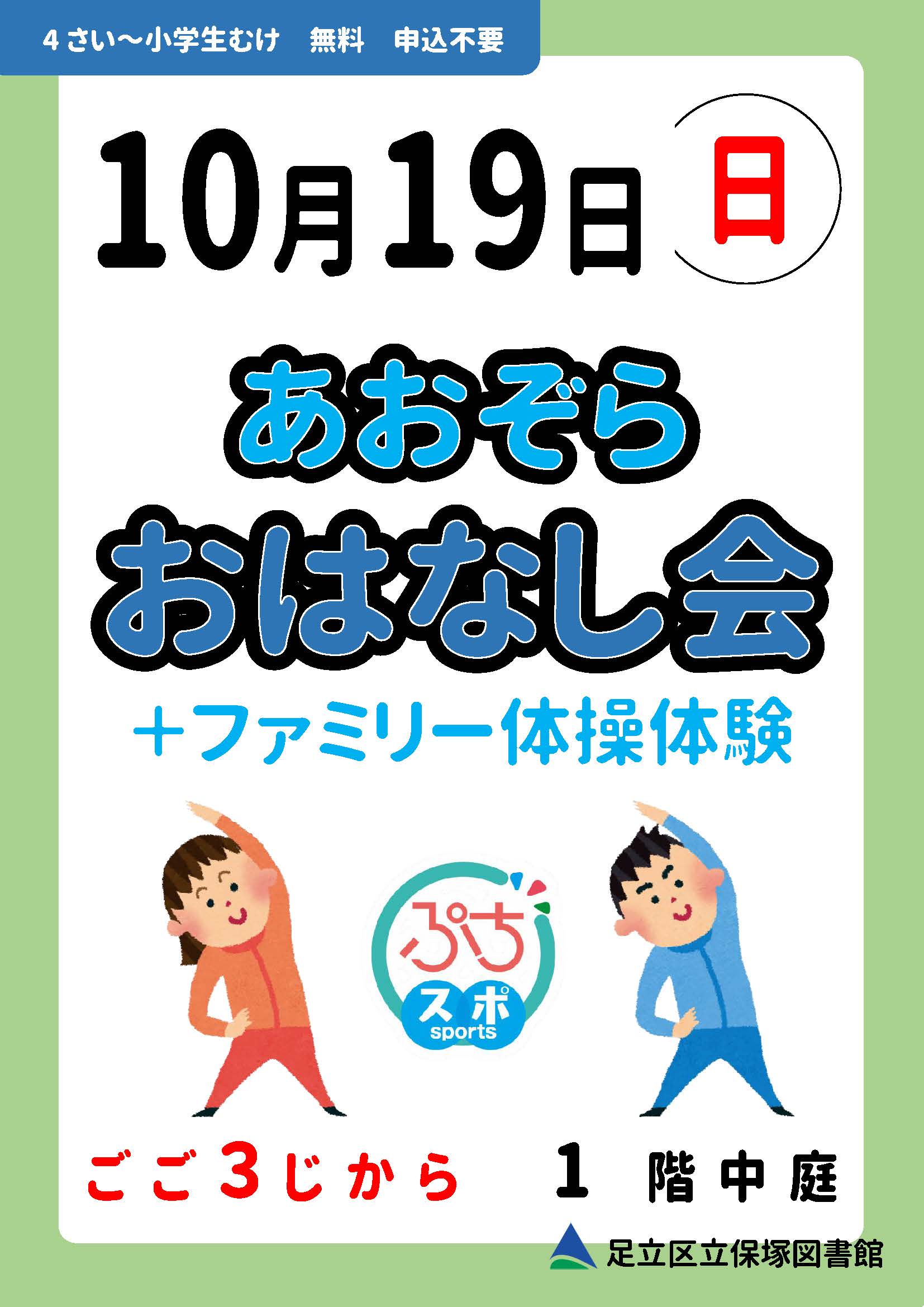 詳しくは青空おはなし会とファミリー体操体験でご確認いただけます。