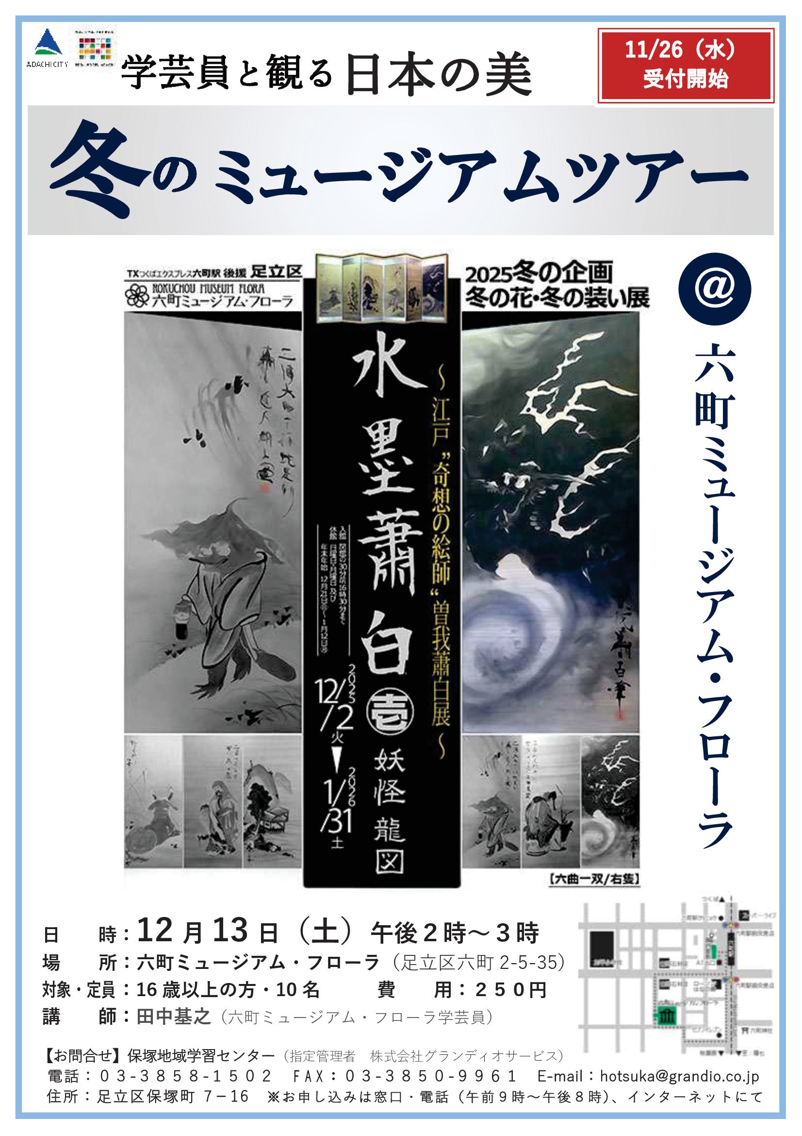 | 日時 | 2026/1/19~3/30の毎週月曜日(2/9・23、3/9を除く) 午後1時30分~2時45分 |