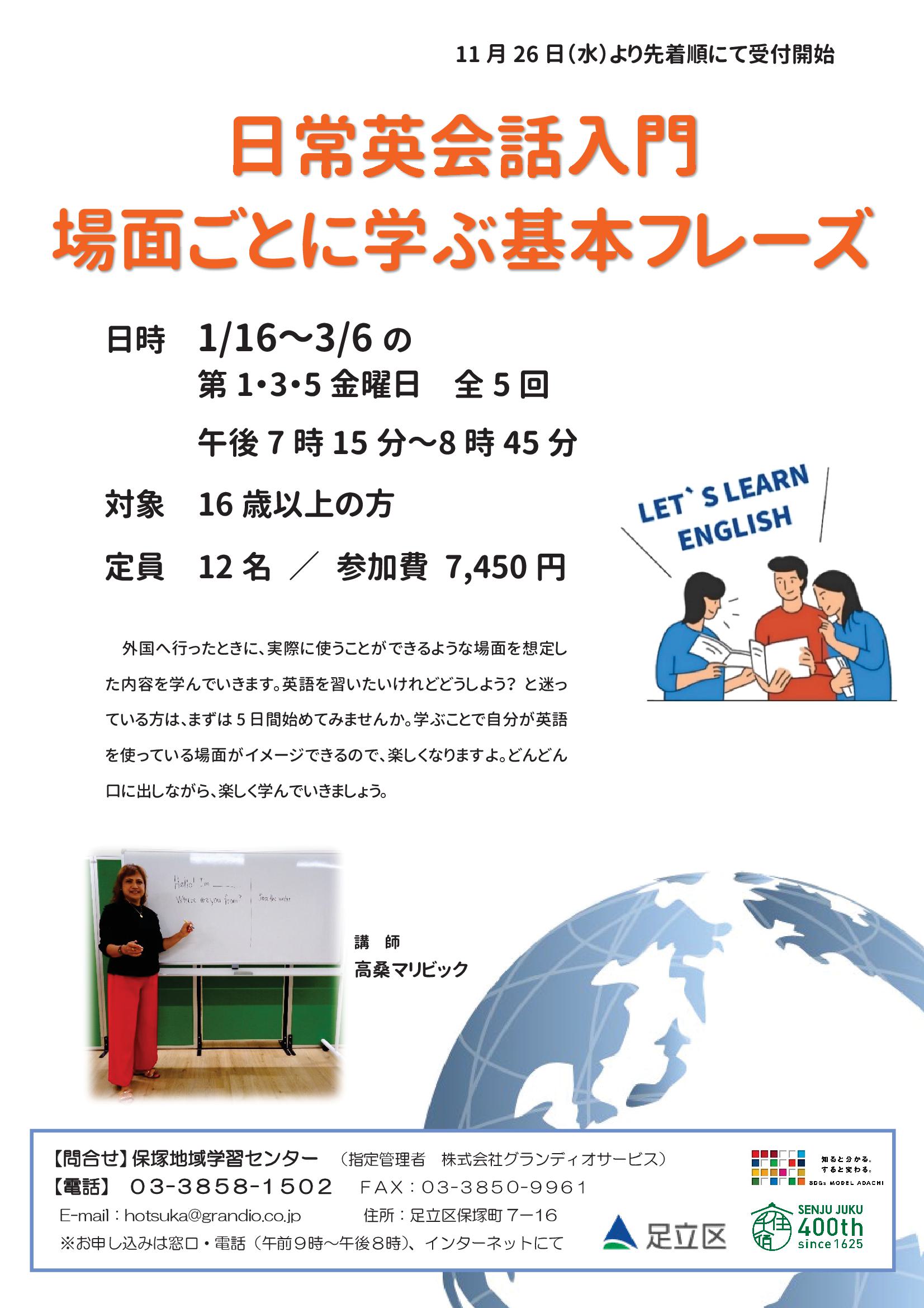 | 日時 | 2026/1/10~2/14の毎週土曜日(1/17を除く) 午後5時45分~7時 |