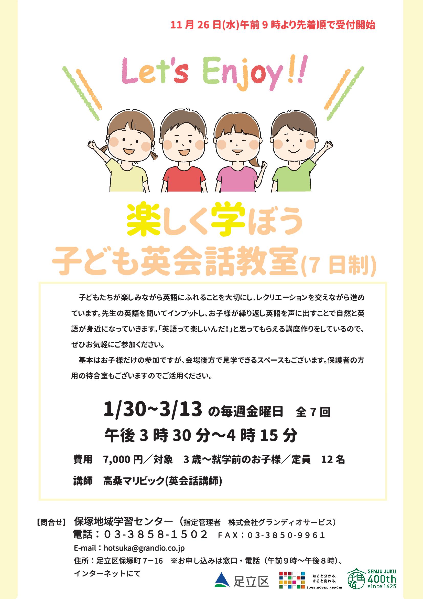 | 日時 | 2026/1/30~3/13の毎週金曜日 午後3時30分~4時15分 |