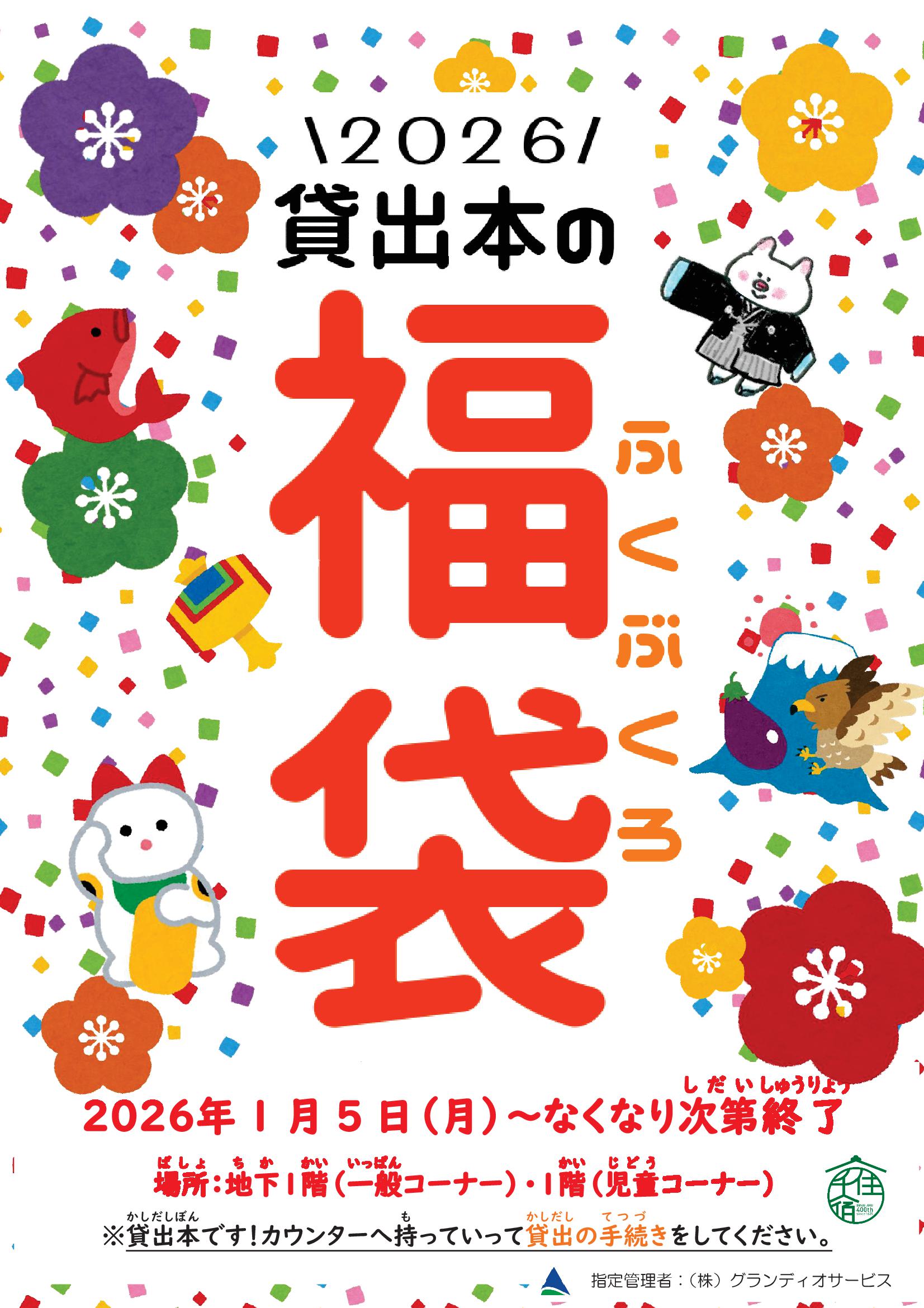 今年もやります、貸出本の福袋!気になったテーマの袋を選んで貸出をしよう!新たな本との出会いがあるかもしれません。(無くなり次第終了です)