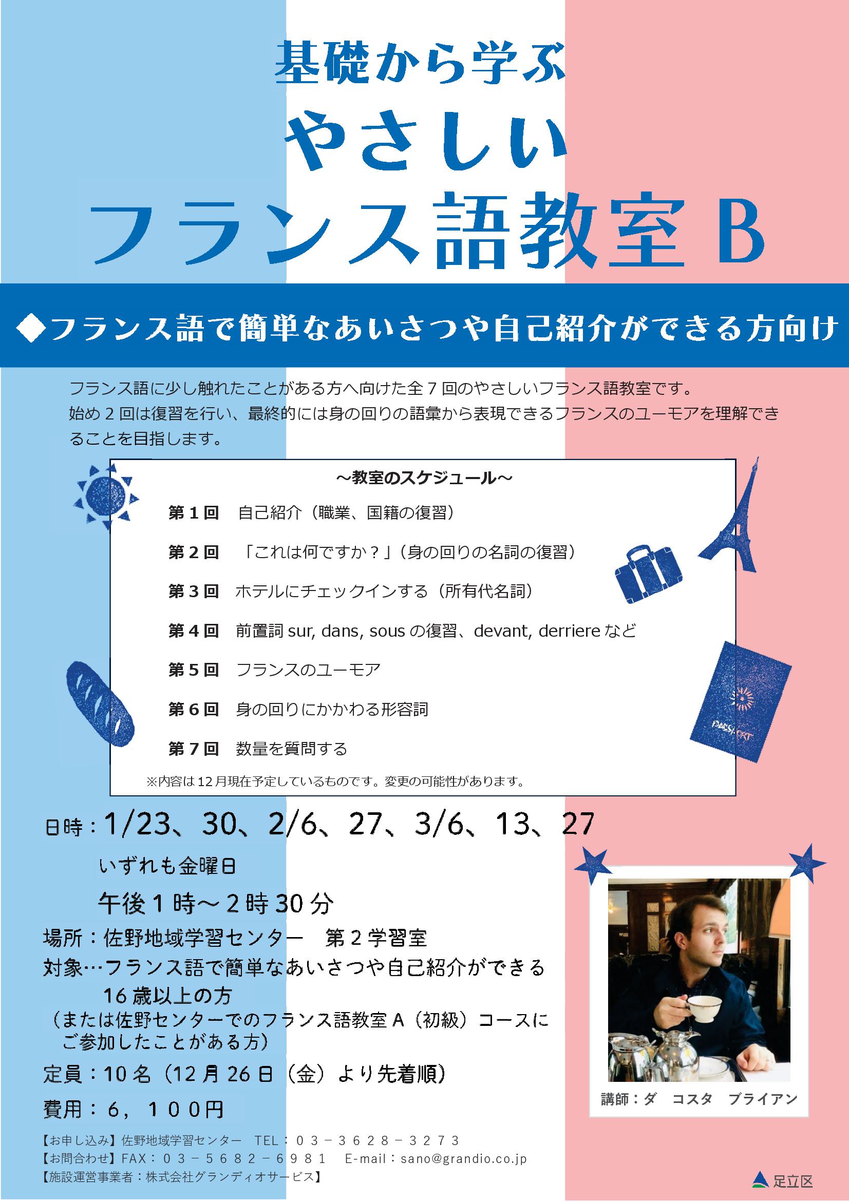 ◆B:フランス語で簡単なあいさつ、自己紹介ができる16歳以上の方