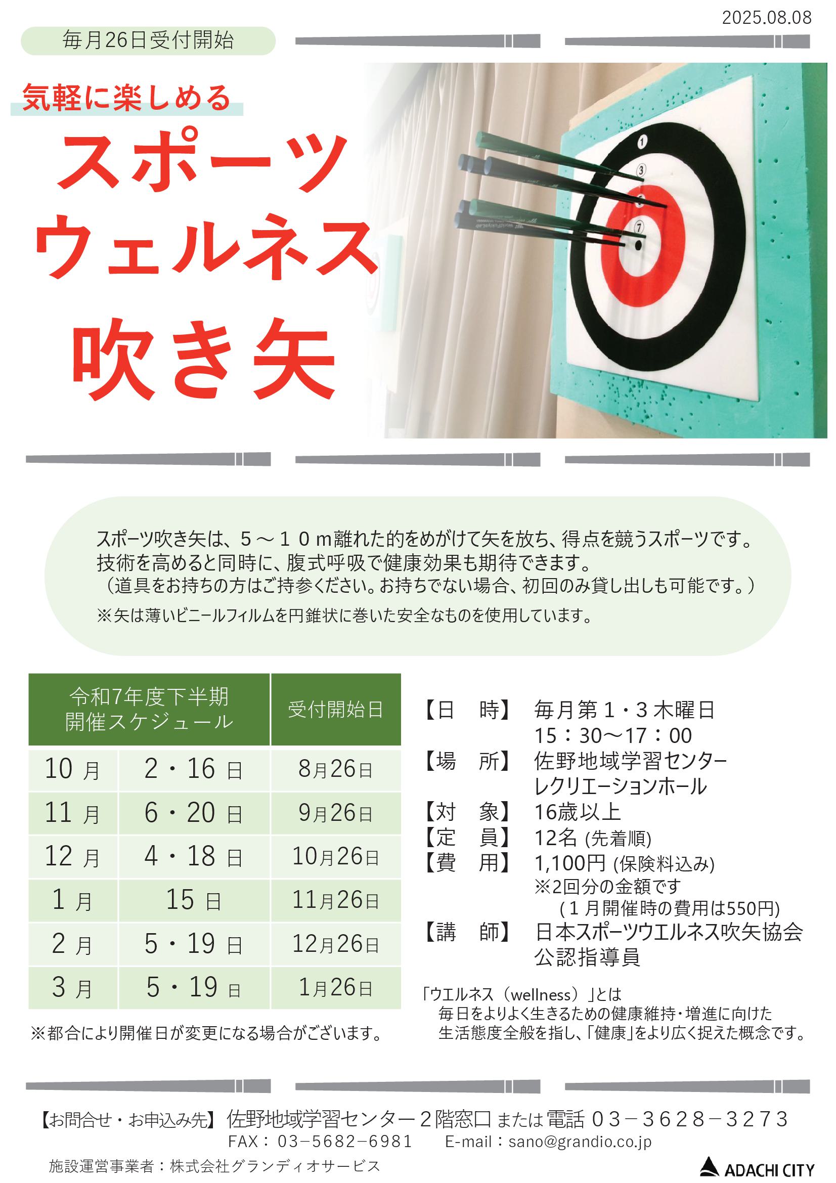 誰でも手軽に楽しめる スポーツウエルネス吹矢(2日制)