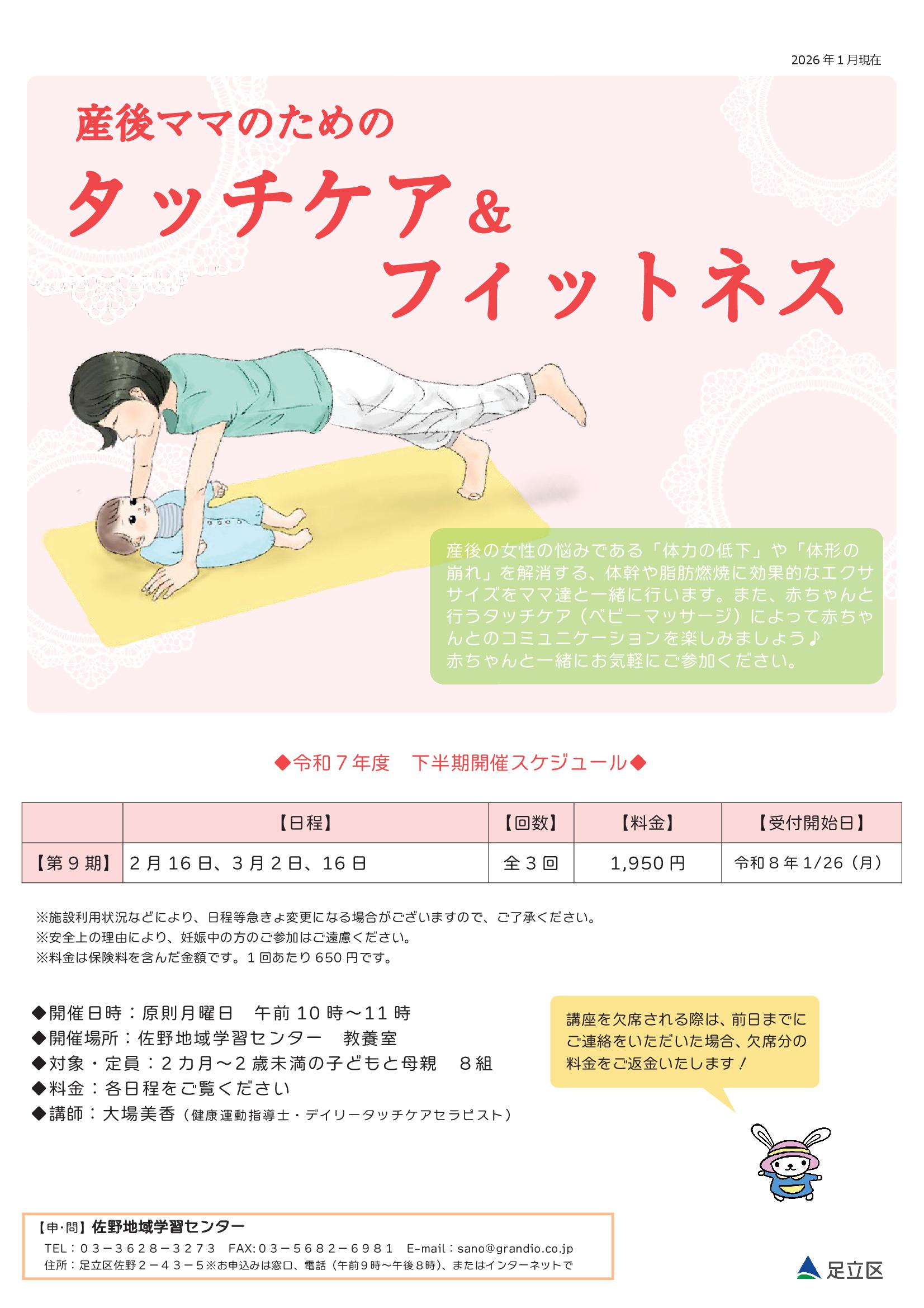 産後ママのためのタッチケア&フィットネス(3日制)