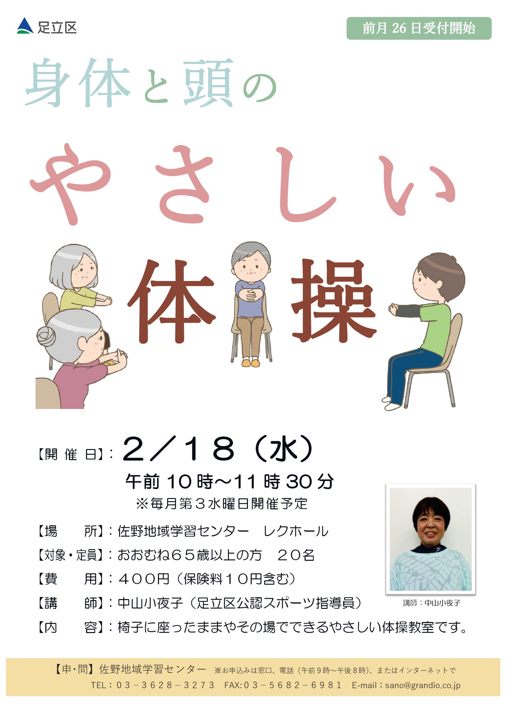 〇講師:中山小夜子・穂苅千春(健康運動指導員、足立区公認スポーツ指導員)