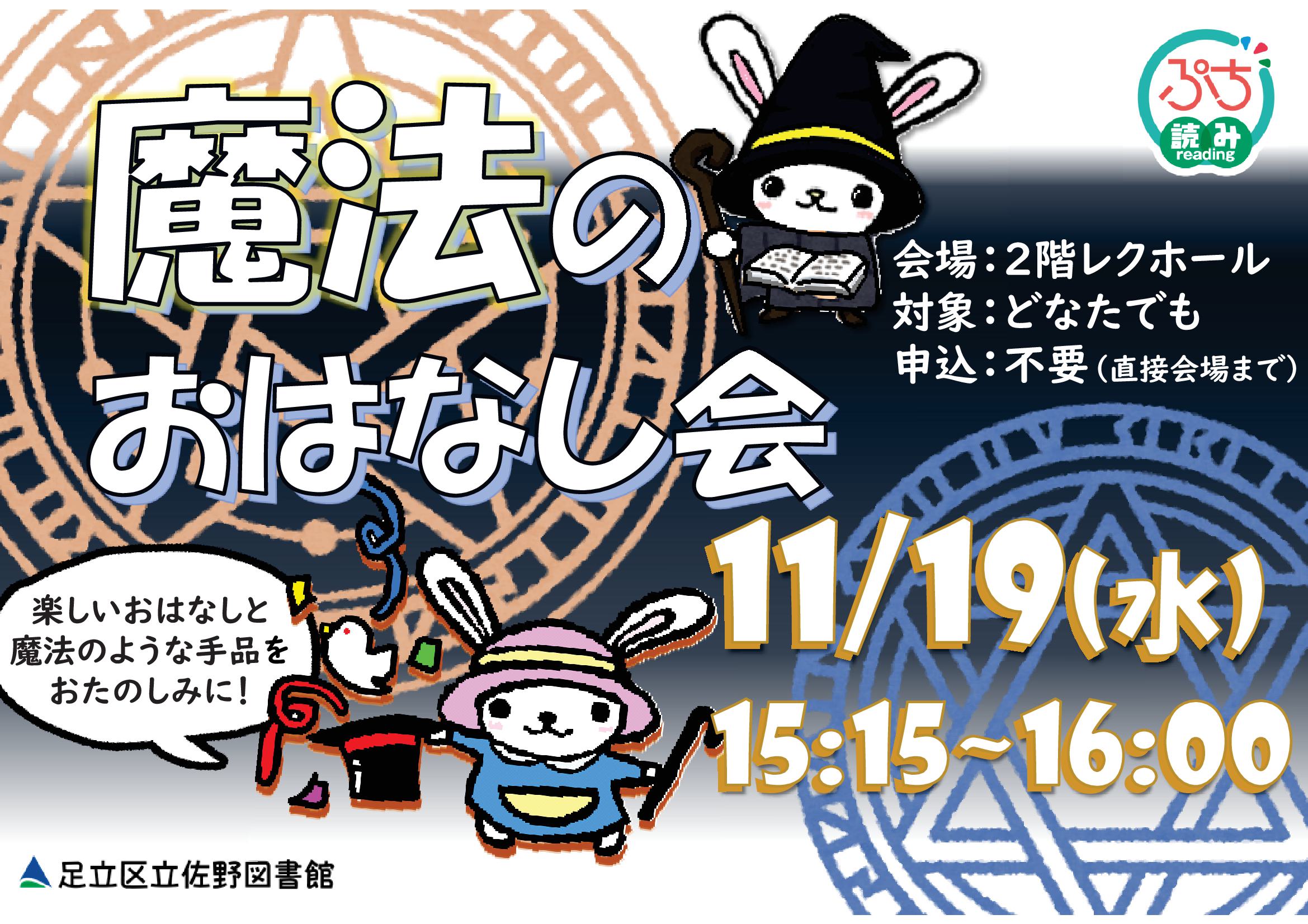 魔法使い養成講座で習得した手品を魔法のおはなし会でお披露目しましょう。おはなし会に来てくれた皆さんは、手品とおはなしをお楽しみください。