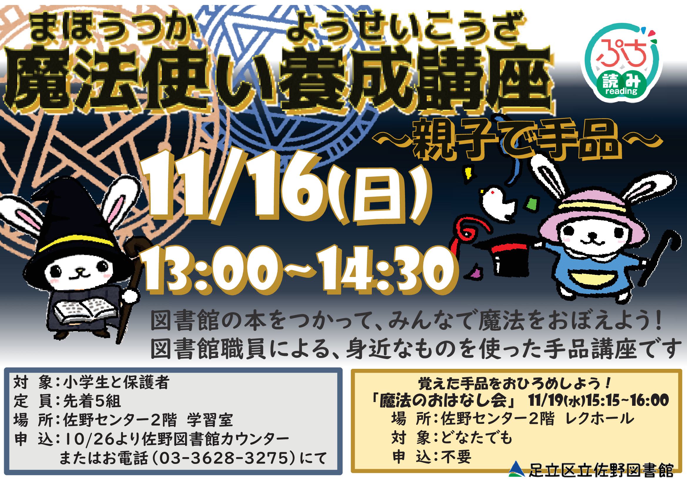 図書館職員による手品講座です。小学生でもその場ですぐにできるものばかり。手品を覚えたら親子で披露しあいましょう。当日は本の貸出や図書館の利用方法の案内も行います。ぜひ本を読んで新しい魔法(手品)におうちで挑戦しましょう。
