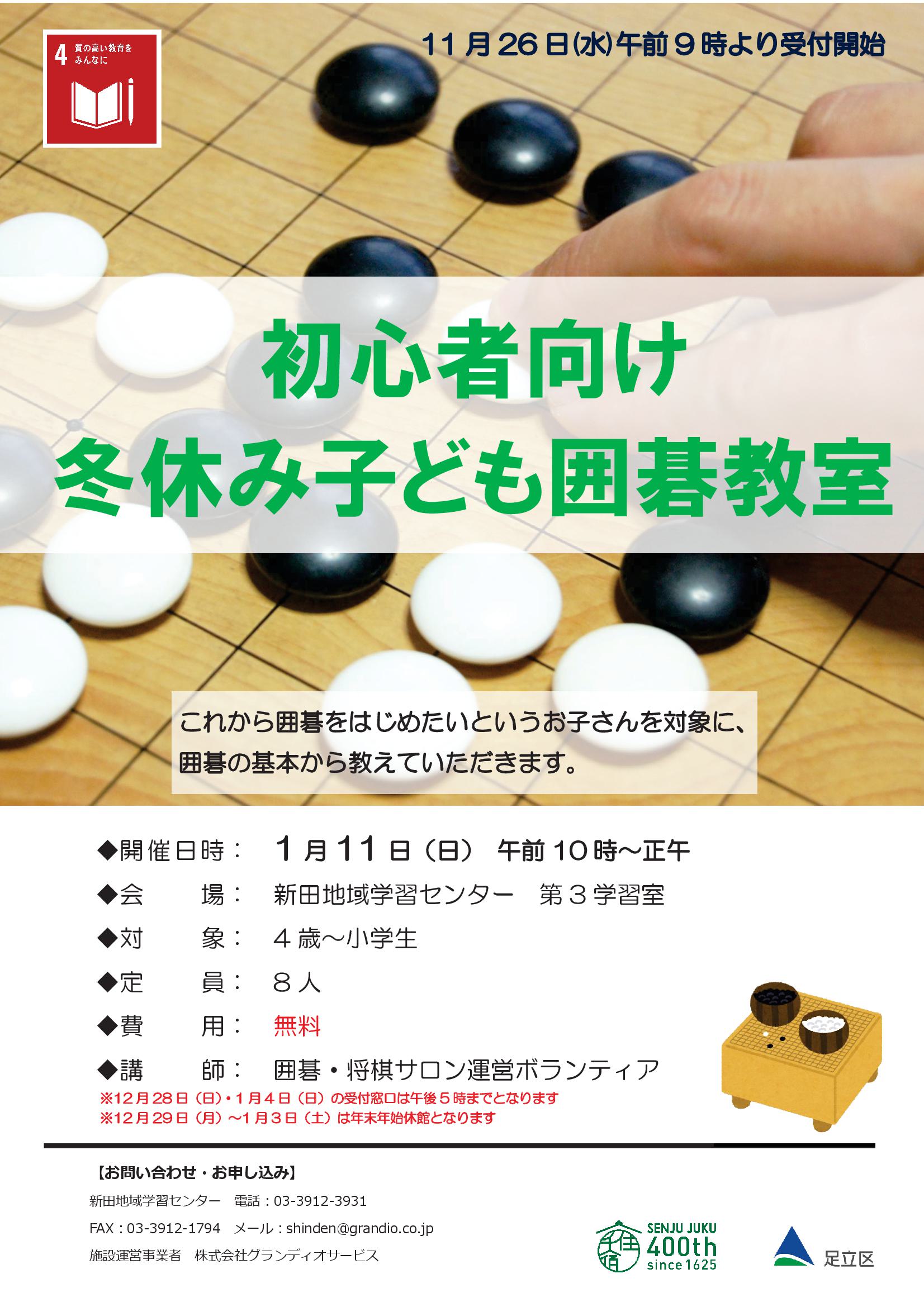 これから囲碁・将棋をはじめたいというお子さんを対象に、囲碁・将棋の基本から教えていただきます。