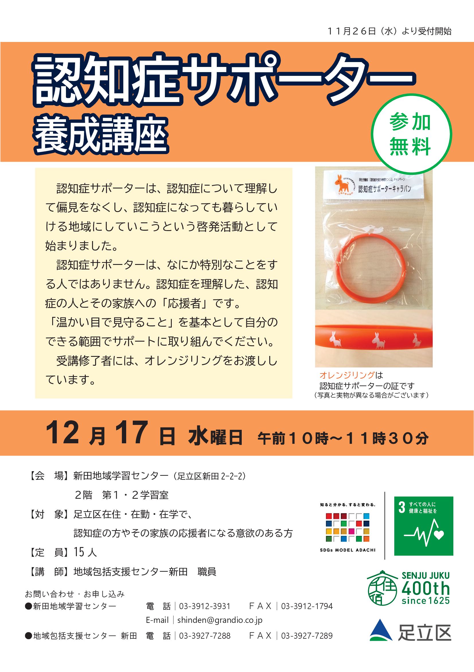 ◆足立区在住・在勤・在学で、認知症の方やその家族の応援者になる意欲のある方