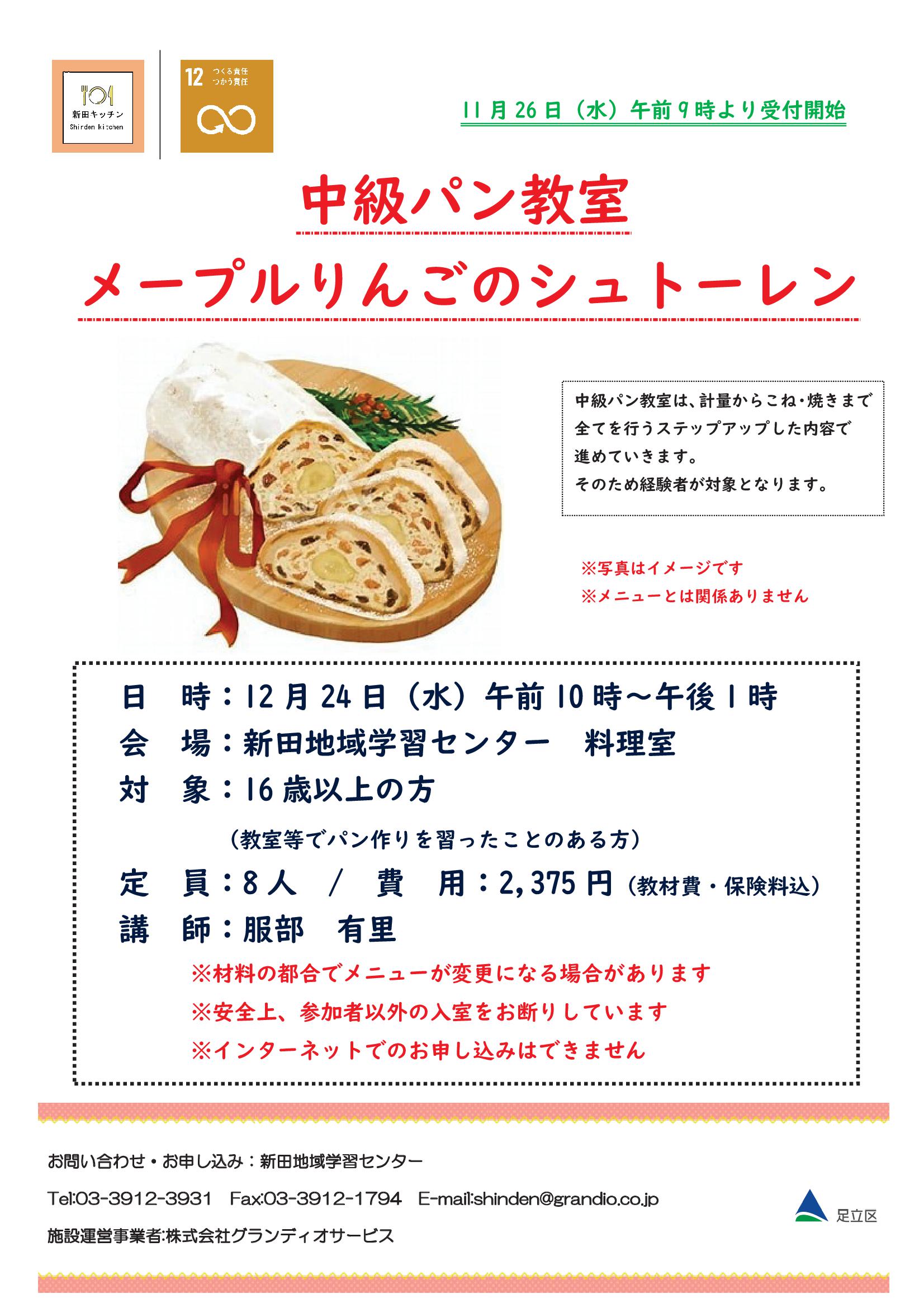 今回のメニューは、メープルりんごシュトーレンを予定しています。