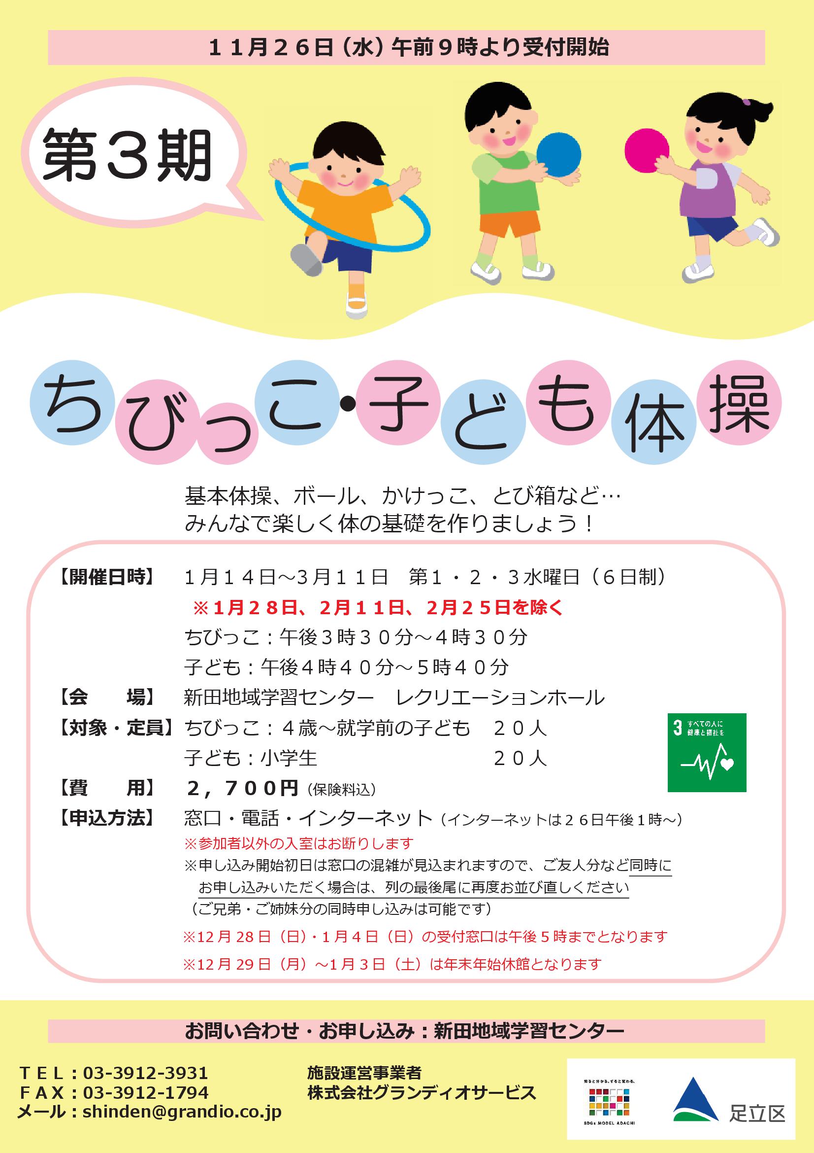 | 日時 | 2026/1/14~3/11 毎週水曜日 (1/28・2/11・25を除く) 午後3時30分~4時30分 |