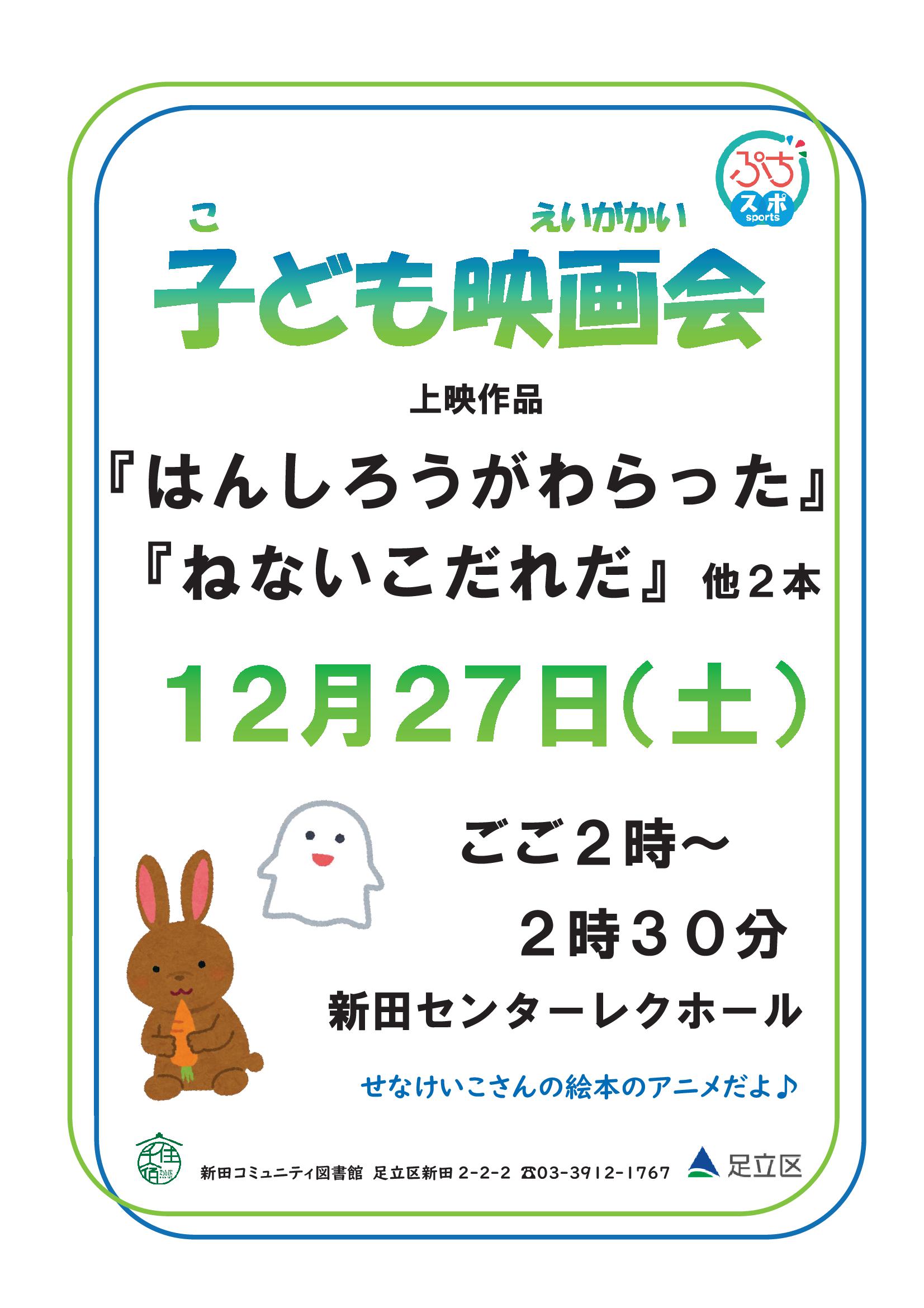 12月は、「はんしろうがわらった」・「ねないこだれだ」と、他2本を上映予定!お友達を誘って、是非観に来てね♪